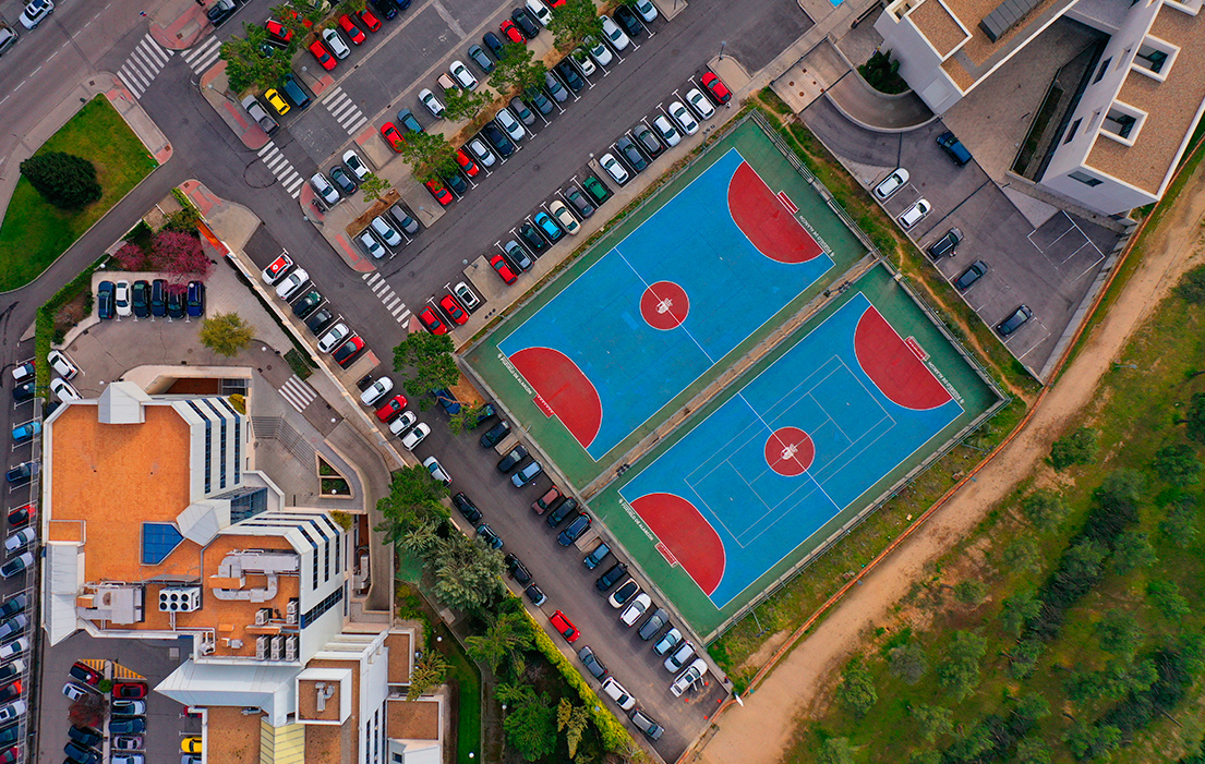 La Biblioteca Municipal Universitaria de ESIC está situada en un edificio anexo -al lado de los campos de deporte-.